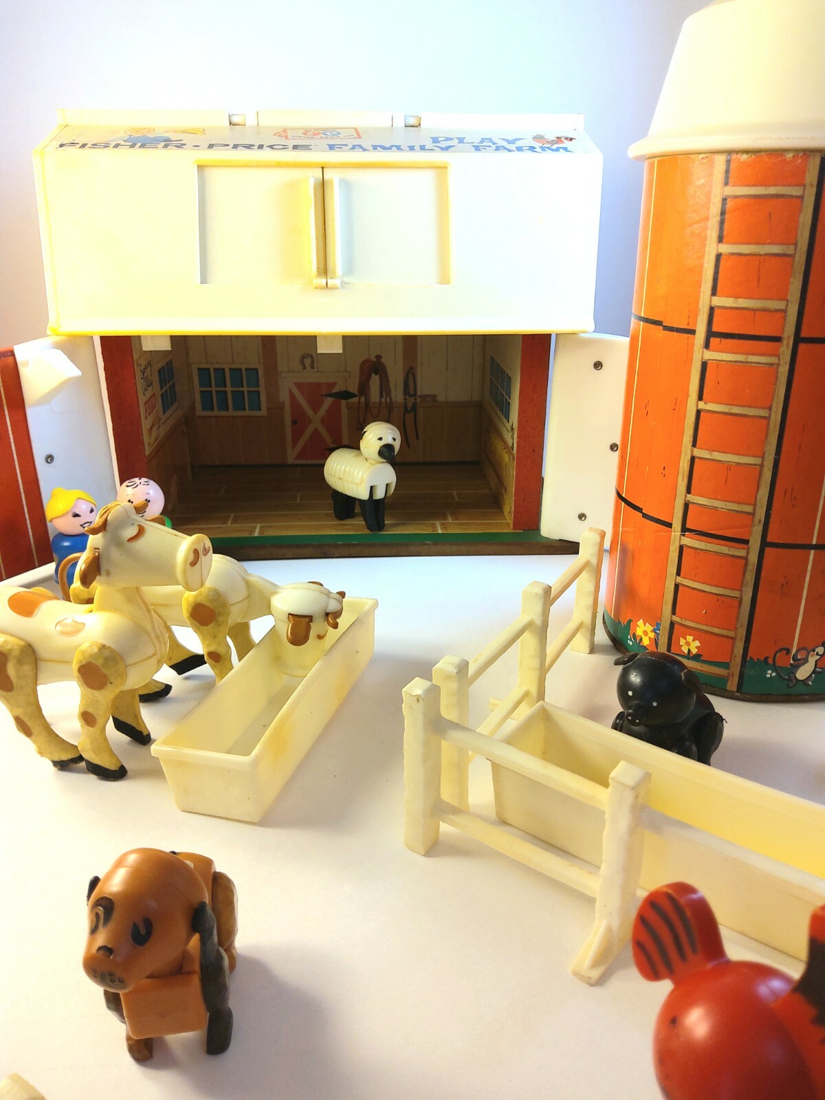 Vintage 1967 Fisher Price Family Farm Barn Silo Minibus Animals 35 Pieces Ebay